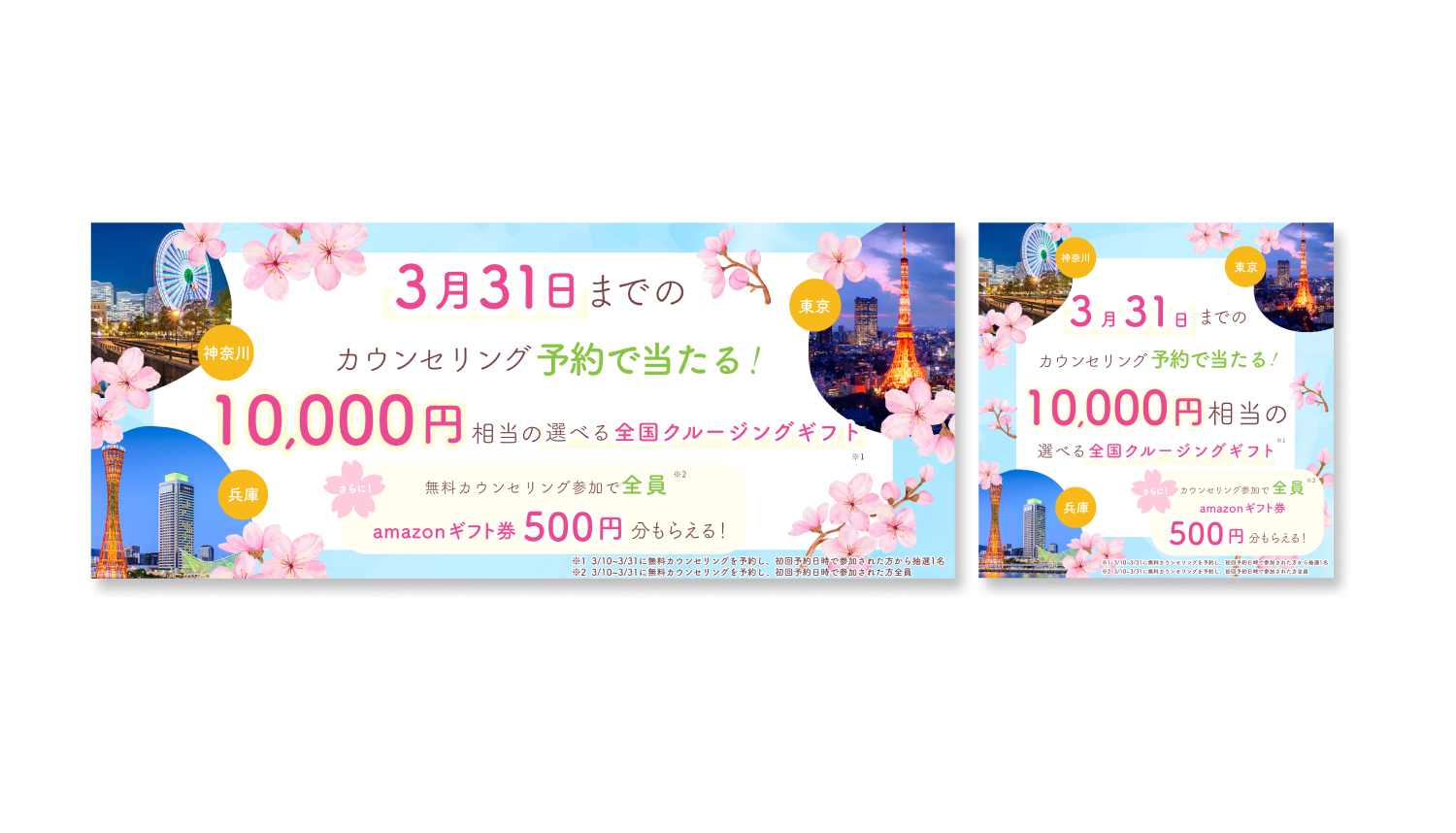 バナー作成 2025年9月21日 最終更新日時 : 2025年9月21日 Mina_portfolio 【製作時間】3時間/1枚【使用ソフト】Photoshop・illustrator【担当業務】デザイン【意識した亊】春らしい季節感が伝わるデザインにしました。